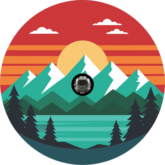 Red Sunset Delight with Mountain and a Lake Spare Tire Cover for Jeep, Bronco, RV, Camper, Trailer, & More