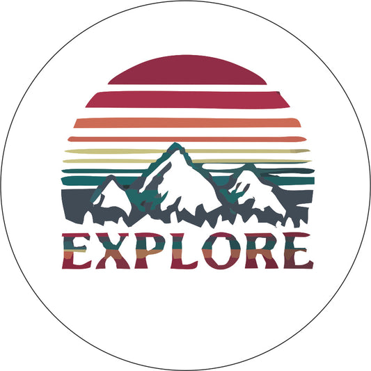 Explore Retro Design Mountains & Sun - Spare Tire Cover For RV, Camper, Jeep, Bronco, VW Bus, Van, & More
