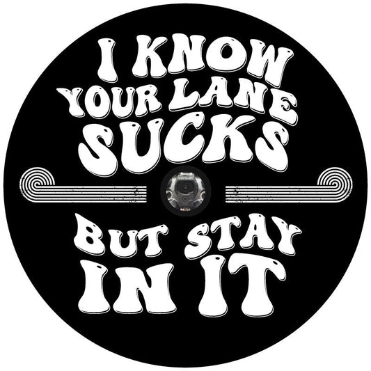I Know Your Lane Sucks, But Stay In It - Funny Spare Tire Cover For Jeep, Bronco, RV, Camper, Van, Bus, Motorcoach, Etc.