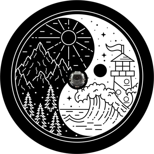Mountains Meet Ocean Yin Yang Spare Tire Cover - Jeep, Bronco, RV, Camper, Trailer, FJ Cruiser, & More
