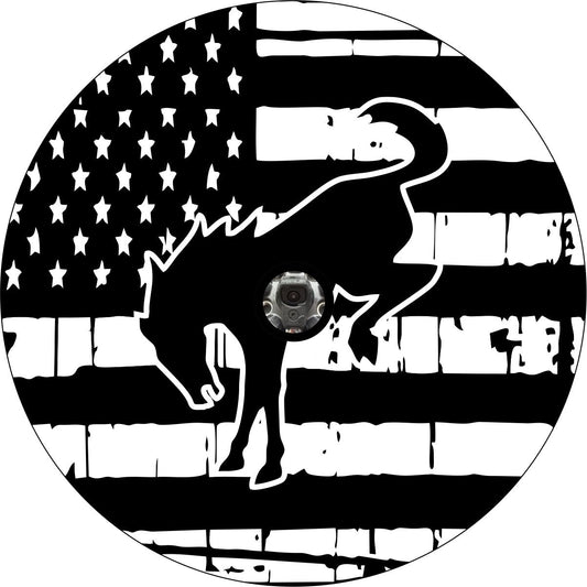 American Flag with Bronco Horse Spare Tire Cover Jeep, Bronco, RVs and more