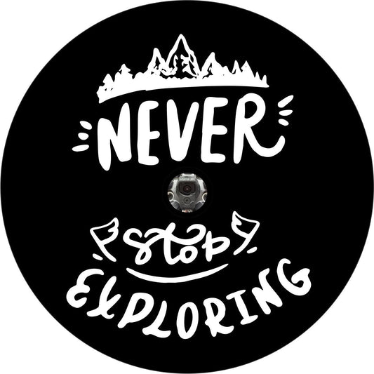 Never Stop Exploring - Custom Spare Tire Cover for Jeep, Bronco, RV, Campers, Vans, & More