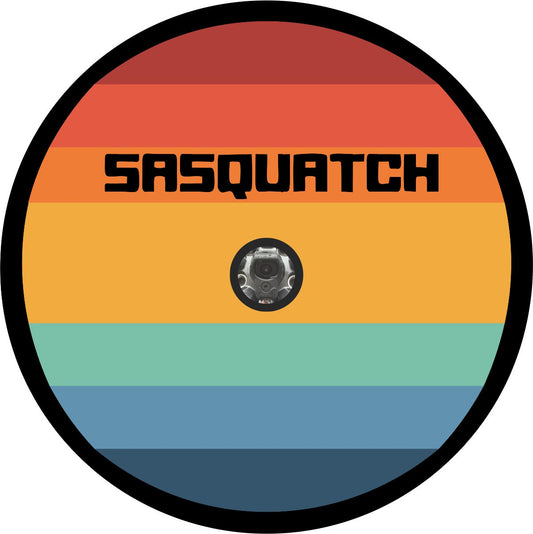 Striped Colored Vintage Sasquatch Logo for Spare Tire Cover for Jeep, Bronco, RV, Camper, Trailer, & More