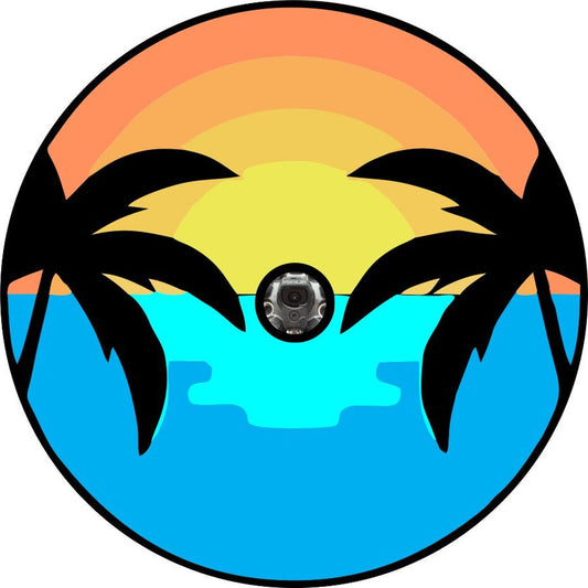 Sunset on the Water & Palm Trees Spare Tire Cover for Jeeps, Bronco, Campers, Vans & More