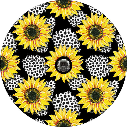 Sunflower + Leopard Cheetah Print Spare Tire Cover - Bronco, RV, Jeep, Camper