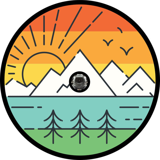 Thin Line Design Retro Landscape Mountain Spare Tire Cover | Jeep, RV, Camper, Bronco, Etc.