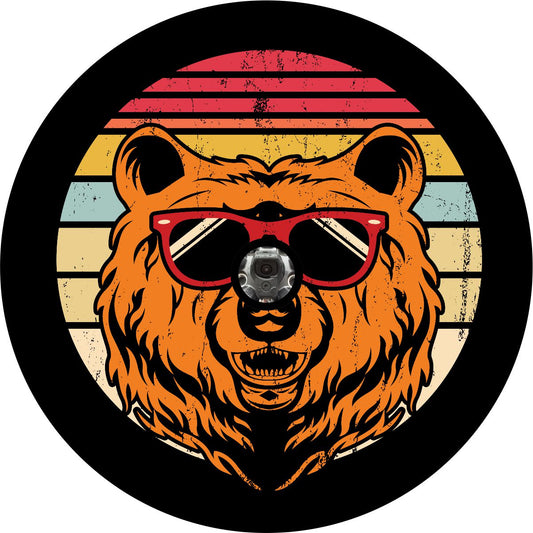 Vintage Bear with Sunglasses - Spare Tire Cover for Bronco, Jeep, RV, Campers, Trailers, & More