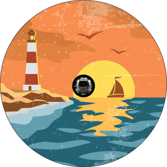 Vintage Lighthouse Coastal Sea Spare Tire Cover