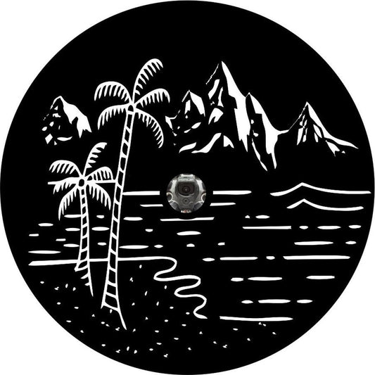 Beach with Palm Trees and Mountains Custom Spare Tire Cover (any color)