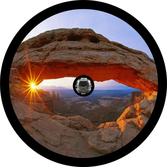 Camper-Themed Unique Outdoor Landscape Spare Tire Cover for Campers & RVs
