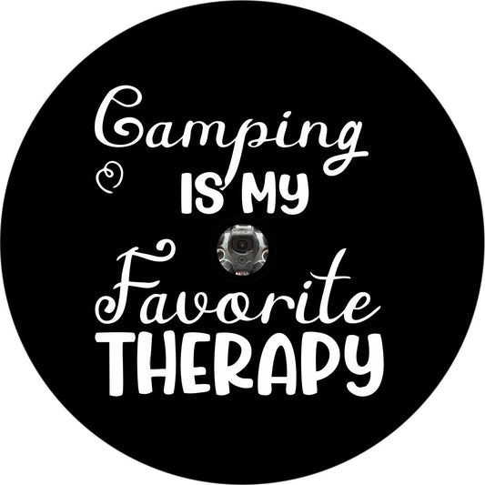 Camping Is My Favorite Therapy - Spare Tire Cover for RVs, Camper, Jeeps, Bronco, and More