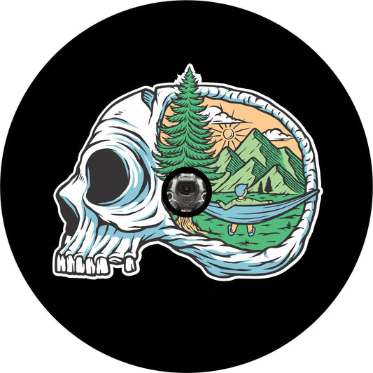 Camping Until I Die Skull Spare Tire Cover for Jeep, Bronco, RV, Camper, & More