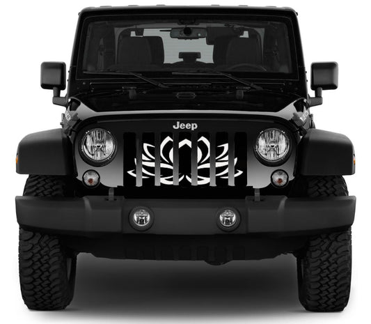 White Vinyl Mountain Peace Sign Spare Tire Cover for Jeep, RV, Bronco, Camper, Trailer, & More