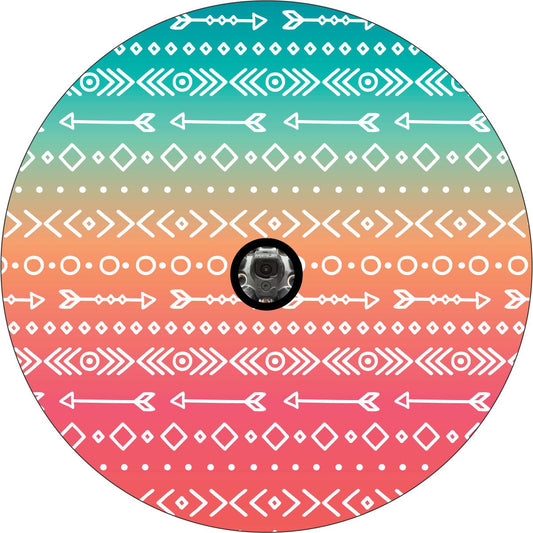 Aztec & Arrow Print on Pastel Ombré Spare Tire Cover for Jeep, Bronco, RV, Camper & More