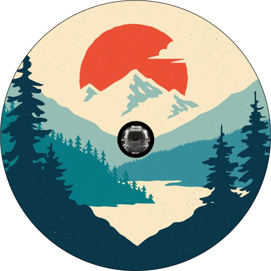 Geometric & Linear Mountain Landscape Spare Tire Cover for Camper, RV, Jeep, Bronco, Van
