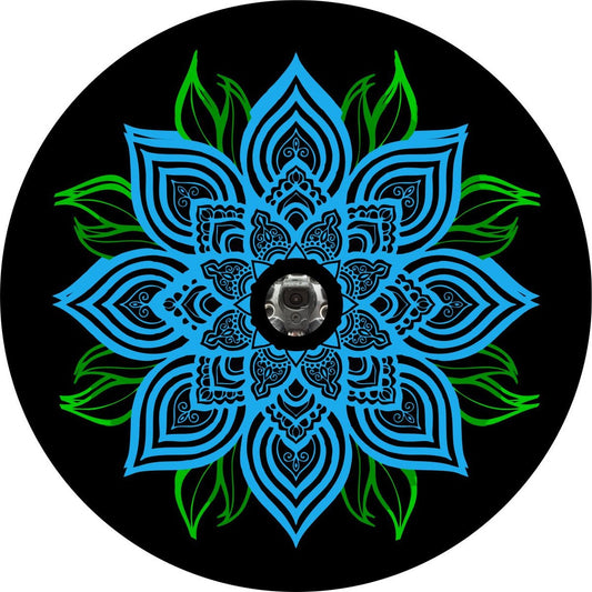 Blue Mandala Flower with Green Leaves