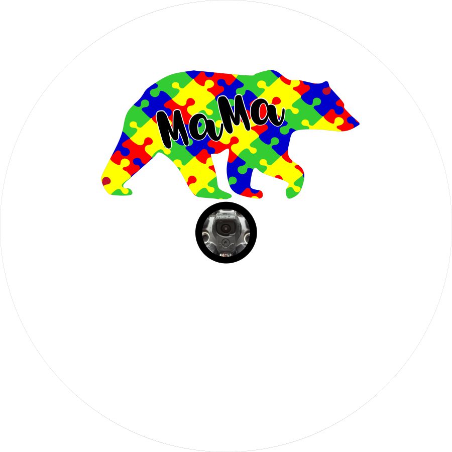 A bright and beautiful autism awareness design for the incredible mothers who rally behind and support their autistic children. This design is a silhouette of a bear with the traditional autism awareness puzzle pattern with the word "mama" written across the bear to signify being a mother of an autistic child.