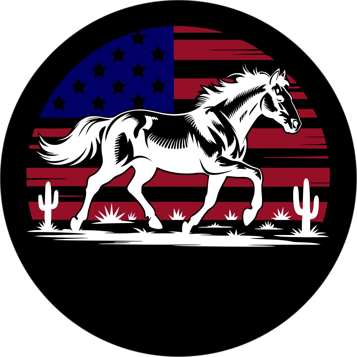 Bronco Horse with American Flag Spare Tire Cover for Jeep, Bronco, RV, Camper, Trailer, & More