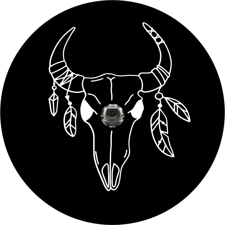 According to Native American folklore, the bull skull when feathers are added to the horns is said that the bones become a symbol of the world of spirits power and a source of ritual. However, in modern culture, the bull skull takes on meaning to each individual who proudly displays it. Some are simply drawn to the rustic western design while others connect to the power of the bull with the feathers representing beauty in that power. However you connect with this design, we can custom print it in the color(s) of your choice or keep it simple as is.