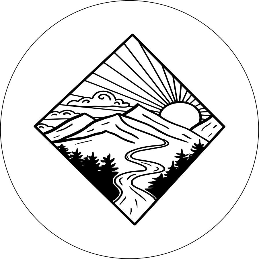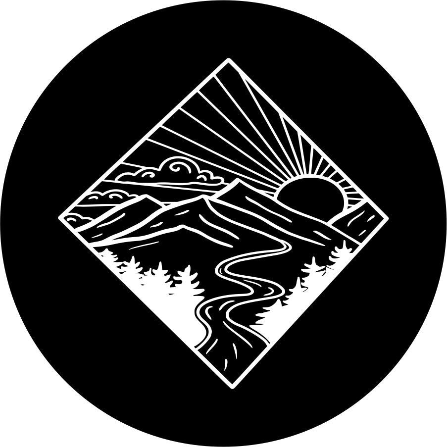 We love the way this mountain landscape graphic that is created inside this diamond has a way of being interconnected to every element and aspect of the image. It's a beautiful reminder about how the earth and its vastness are all connected and dependent upon each component. Each element plays an important part. An overall beautiful design as a whole!