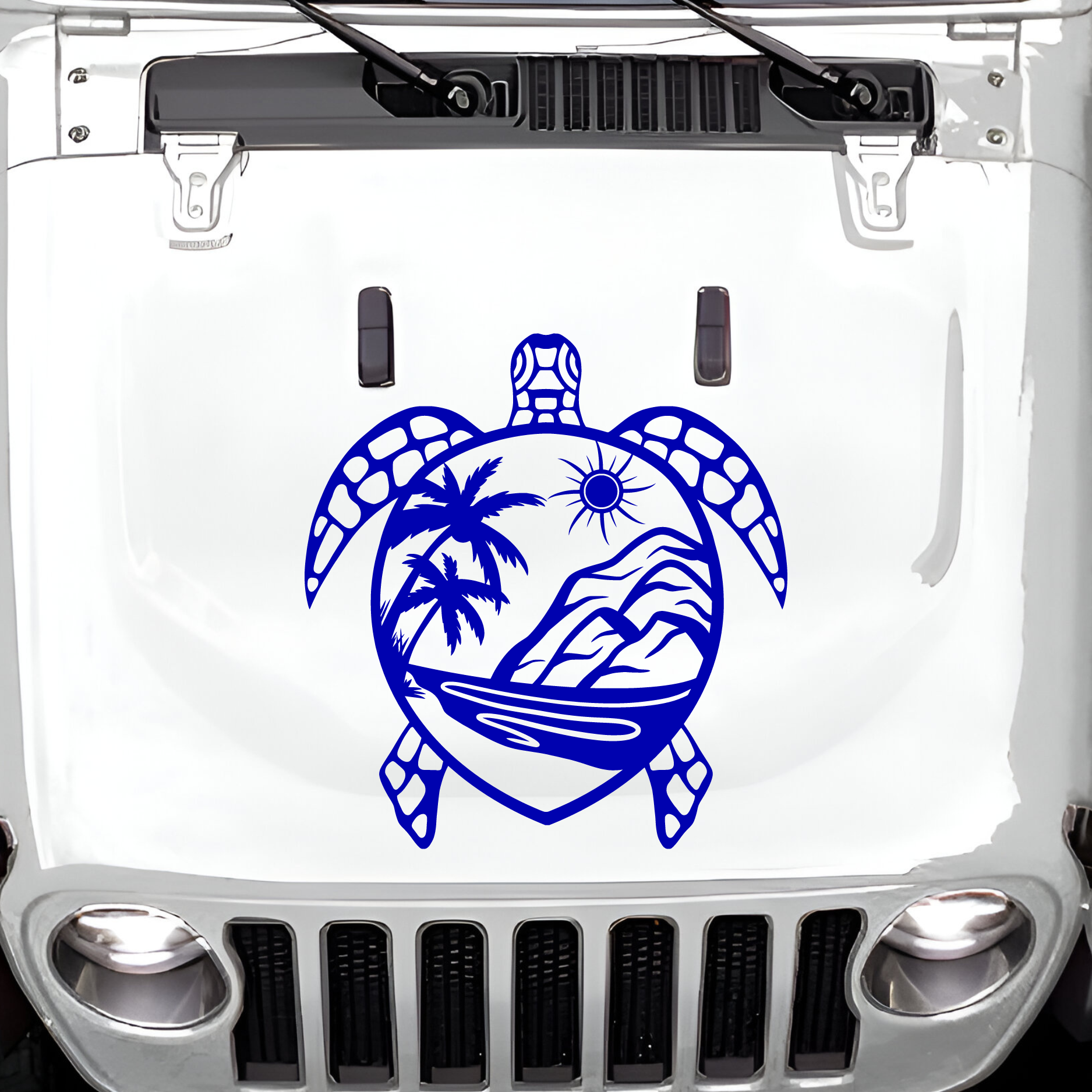 Add some turtle power to your ride with the Turtle Large Hood Decal! At 23 inches wide and 25 inches high, this sun, mountain and turtle decal is sure to make a statement on your hood!